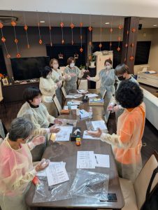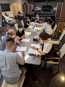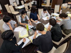不測の事態が起きた場合であっても入居者様、利用者様の生活が継続できるよう、自宅と事業所、それぞれをシュミレーションをしながら職員間で話し合いを行いました。活発に意見が飛び交い、あっという間に研修時間が過ぎました。
